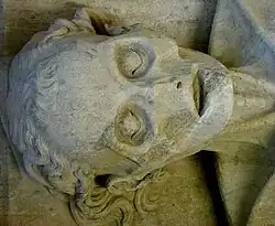 The Cadaver Tomb of Guillaume de Harsigny is a 1394 cadaver monument (transi) now in the Musée d'art et d'archéologie de Laon (Musée de Laon). It is notable as one of the earliest known French transi, and the first to be sculpted in the round (ie fully three dimensional as opposed to carved on coffin lid or stone slab).[1] The original monument contained a tomb chest holding his remains, however this was lost in 1841. Similarly, the effigy had been painted black, this too is lost.