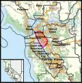 Currently, the 12th district is located in Alameda County and includes the cities of Oakland, Berkeley, Emeryville, Alameda, Albany, Piedmont, and most of San Leandro. With a Cook Partisan Voter Index rating of D+39, the 12th district is the most Democratic district in California, giving nearly 90% of its vote to Democrats in both the 2016 and 2020 presidential elections.[1][2]