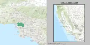 California's 37th congressional district is a congressional district in the U.S. state of California based in Los Angeles County. It includes many neighborhoods west and southwest of Downtown Los Angeles.