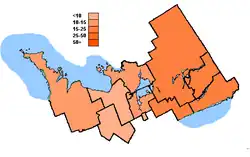 The Progressive Conservatives swept the region, winning everywhere with significant majorities. The Liberals arrived second in every riding in the region, with the NDP third.