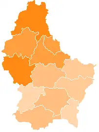 Unlike in Switzerland and similarly to France, Luxembourgish cantons have no administrative structure of their own—rather, they are used to delimitate electoral constituencies and judicial districts.[1] Until 2015, they also served to delimitate Luxembourg's three districts.