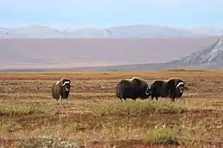 The coastal region supports a variety of large terrestrial and marine mammals. The abundant caribou are part of the West. Large predators include brown bears and wolf packs.[14] Smaller mammals include snowshoe and Arctic hares, weasels, minks, otters, porcupines and a few wolverines. Marine mammals in or near monument waters include fin, bowhead, gray and beluga whales. Seal species include ringed, spotted, bearded and ribbon seals, with occasional walruses. Ringed seals are hunted by native subsistence hunters, and occasionally beluga whales and walrus are hunted as well.[8]
