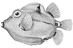 - ^ Christopher Scharpf; Kenneth J. Lazara (21 August 2024). "Order TETRAODONTIFORMES: Families MOLIDAE, BALISTIDAE, MONACANTHIDAE, ARACANIDAE and OSTRACIIDAE". The ETYFish Project Fish Name Etymology Database. Christopher Scharpf and Kenneth J. Lazara. Retrieved 25 September 2024.