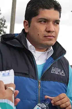 Carlos Eduardo Guevara Villabón (born 29 January 1977) is a Colombian Industrial engineer and politician. He was Councillor of the Bogotá City Council from 2009 to 2011 in replacement of Carlos Alberto Baena.[1] In 2011 he ran for Mayor of Bogotá, D.C. as candidate of the MIRA Party.[2] In 2014 he was elected to the Congress of Colombia as Representative of Bogotá for the 2014–2017 term.[3] In 2018 he was elected Senator with over 66,000 votes.[4] In this year he was also appointed Party Chairman in replacement of Carlos Alberto Baena.[5]