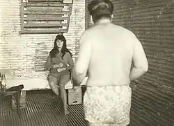 Writers Raúl Manrupe and María Alejandra Portela characterized the film as having "black and white footage without any explanation, red as the dominant color and camp carried to its ultimate consequences."[3] Throughout the film, the female body is objectified as "a piece of meat", featuring overlays of images of cuts of meat and Sarli's body.[4] Writer Tamara Drajner Barredo felt that "this identification of the female body with the meat has as a correlate an identification of the sexual desire with an animalized and irrational carnal desire."[4] This is made explicit in the final dialogue, in which Antonio tells Delicia that they raped her "to satisfy the animal instinct that we all carry inside. But without soul, without love."[4] Bó always maintained that his films dealt with social issues, evident in early films such as Thunder Among the Leaves from 1958 and Sabaleros from 1959.[4] However, this intention of social criticism and realism of his first films was diluted as the director and Sarli acquired national and international recognition, replacing them with traditional melodrama, crime and picaresque, where the erotic scenes "acquired their own autonomy."[4] Nevertheless, in a 1974 interview for magazine Siete Días Bó still claimed that his films "deal with social issues, but since Isabel acts in them, sex has implications in the argument."[4] The social problem depicted in Carne is that of violence; it might even be argued that the film seeks to draw attention to violence against women.[5] In this matter, Bó stated: