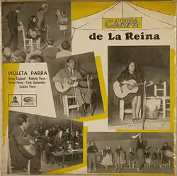 Carpa de La Reina ("tent of the queen") is a collective album released on the EMI Odeón label (LDC-36581) in the middle of 1966. The collective is led by Violeta Parra with other artists invited to her popular art center in the La Reina commune in northwest Santiago. The other artists featured on the album are her brothers Lautaro and Roberto Parra, Grupo Chagual, Héctor Pavez, Conjunto Quelentaro, and Lautaro Parra.[1]