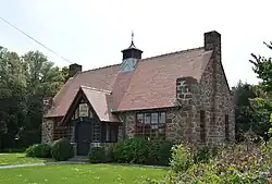 In June 1893, Wood's father paid NZ£100 to the architect Frederick Strouts for Cecil Wood to be articled to him.[13] Strouts had qualified as an architect in England in 1869 after having emigrated to Christchurch in 1859. Strouts was one of the founders of the Canterbury Association of Architects in 1871.[14] When Wood joined the firm, Strouts had just made Robert Ballantyne (1866–1936) a junior partner. Two major commissions that the office worked on during Wood's time were the Hyman Marks block of Christchurch Hospital and the homestead for Sir Heaton Rhodes, Otahuna. Strouts had a longstanding association with the Rhodes family and after Strouts retired, Wood received many of that family's commissions. At Otahuna, Wood designed a cottage in 1914 and a woolshed in 1927. After Rhodes' wife had died, Wood designed St Paul's Church—a small stone church in Tai Tapu—as a memorial to Lady Rhodes in 1929 (registered as Category I). In 1931, Wood designed the Tai Tapu library for Rhodes (registered as Category I).[15] Strouts does not appear to have shaped Wood's architectural approach but Wood showed the same professionalism and integrity that he had observed in his teacher.[16]