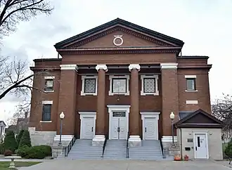 Over 90% of the houses are frame construction, and the rest are brick.[2] A large variety of popular late 19th- and early 20th-century architectural styles are represented in the district. They include: Greek Revival, Gothic Revival, Queen Anne, Second Empire, Italianate, Neoclassical, Tudor Revival, American Foursquare, Colonial Revival, American Craftsman and Bungalows. The houses were largely built before 1930, with a few built after World War II. Three churches are also included in the district: First Baptist (Neoclassical; 1915), Presbyterian Church of Vinton (Neoclassical; 1913), and Faith Independent Baptist (Gothic Revival, c. 1920).