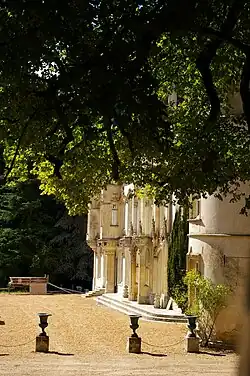 It was expanded in the eighteenth century and, in the nineteenth century, Comte Auguste de Chamoy (Count of Chamois), inspired by Troubadour architecture, gave it its neo-Gothic style. His widow, the former Charlotte-Amélie de Grosourdy de Saint-Pierre (1804–1866), died at the château in 1866.[5]