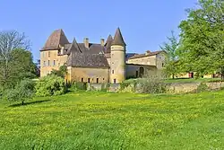 The gardens surround the château of a noble family of Périgord, built in the 14th century. The first gardens, created in the 17th century, were kitchen gardens and a walled ornamental garden. Later, in the 18th century, a Garden à la française was created. A grand axis between the village and woods was laid out, an alley linden trees was planted, along with yew trees trimmed into topiary forms. In the nineteenth century an English landscape garden was added. The garden also has many varieties of old roses and fruit trees.