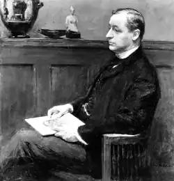 "Established in 1879 from the remnants of a foundering art academy, the Art Institute of Chicago grew into a sturdy organization largely through the efforts of ... Hutchinson, who served as its president from 1882 to 1924."[23] Although Hutchinson's personal wealth was generated thru banking, grain speculation and meatpacking enterprises that his father had established after coming to Chicago in 1856, Charles L. Hutchinson's "greatest enthusiasm was for art and the establishment and growth of the Art Institute".[24] Founded on May 24, 1879[25] as The Chicago Academy of Fine Arts; The Art Institute assumed its present name in 1882.[26] Hutchinson was a founding trustee of the Chicago Academy of Fine Arts, and recognizing his energy and vision, was named by the board of trustees as its first president three years later when it was renamed the Art Institute of Chicago. As one of many accolades conferred on Hutchinson by the Art Institute, the trustees passed a resolution On October 22, 1907, dedicating Gallery 32 as the Charles Lawrence Hutchinson Gallery of Old Masters to commemorate Hutchinson's twenty-fifth anniversary as president of the institution.[27] After he died in 1924, his obituary notice in The Bulletin of the Art Institute noted that "His entire life was devoted to public service, but his service to the Art Institute was so intimate, his devotion so complete that it is not possible to measure it. He was The Art Institute, and it will stand as his most permanent monument".[28]