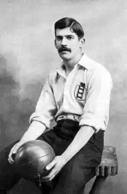 However it is as a footballer that he is more recognised. He first played as a goalkeeper but played initially as a stop-gap but later as the mainstay centre-half for the Old Carthusians (the club for ex-Charterhouse boys) (appearing against them in the 1896 London Charity Cup final,[4] Clifton Association (the Association which took in Bristol and its environs and with whom he played in the inaugural Gloucestershire Cup), as well as the Corinthians and captained England twice against Wales in 1894 and 1895 (when the team consisted entirely of amateur players).