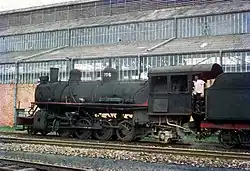 In 1952 LKD merged with CFK to form the Compagnie des Chemins de fer Katanga-Dilolo-Léopoldville (KDL). KDL held the rail network concessions in Katanga, while BCK was the operator.[1] Between 1952 and 1956 the Chemins de Fer des Grands Lacs (CFL) built a 246 kilometres (153 mi) line from Kabalo to Kabongo.[3] In September 1955 the CFL converted from 1,000 mm (3 ft 3+38 in) to 1,067 mm (3 ft 6 in) gauge to match the KDL gauge.[3] The connecting line from Kabongo to Kamina was built by BCK for the KDL.[1]
