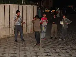 Although children's street activity varies from place to place, research shows that it appears to share many commonalities across many cultures.[3] As a traditional phenomenon it has been closely investigated and documented in the western world during the 20th century by anthropologists and folklorists such as Iona Opie; street photographers such as Roger Mayne, Helen Levitt, David Trainer, Humphrey Spender[4] and Robert Doisneau; urbanists such as Colin Ward and Robin Moore, as well as being described in countless novels of childhood. The research of Robin Moore stresses children's need for "marginal" unsupervised areas "within running distance" of homes (scrubby bushes and hedges, disused buildings). Two academic journals emerged to discuss this area, the Journal of Children's Geographies and Play & Folklore.