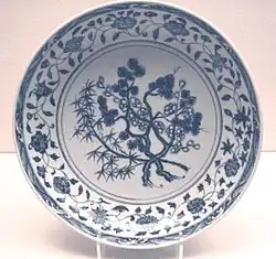 Chinese porcelain was prized by wealthy people in the Middle East from the time of the Tang dynasty.[39] A large collection from the Ottoman sultans Selim I and Suleiman the Magnificent is held by the Topkapı Palace museum in Istanbul.[40] Another large collection of 805 pieces of Chinese porcelain, donated to the Ardabil Shrine by Shah Abbas I of Persia in 1607–08, is now held in Tehran's National Museum of Iran.[41] Blue and white Chinese porcelains from the 14th to 16th centuries have also been found in peasant houses in Syria. Often the porcelain was designed for the market, with decorative designs that included prayers and quotations from the Koran in Arabic or Persian script.[40] Large amounts of Ming porcelain had also been found in Iraq and Egypt, and also in Southeast Asia, Sri Lanka, India and East Africa.[42]