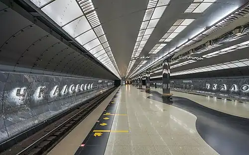 Chkalovskaya (Russian: Чкаловская) is a station of the Yekaterinburg Metro which was opened on July 28, 2012. It is the eighth station on the first line of the Yekaterinburg Metro. Chkalovskaya Station is named after the region with the same name.
