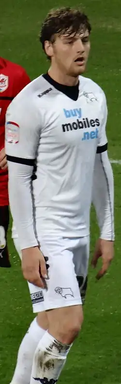 On 9 May 2013, it was confirmed that Martin would join Derby County on a free transfer, signing a two-year contract with the possibility of a third year, with the transfer formally taking place on 1 July 2013.[56] Martin faced competition from Johnny Russell, Conor Sammon and Jamie Ward for a starting place.[57] Martin started alongside Russell in Derby's 1–1 draw with Blackburn Rovers on the opening day, his first start as a permanent player.[58] He scored a brace in the second game of the season, a 2–1 victory away at Brighton & Hove Albion on 10 August.[59] His third goal of the season came in a 3–0 win away at Yeovil Town[60] and his fourth and fifth goals of the season came in a 5–0 win over Brentford,[61] a second round tie in the League Cup. He scored his third and final League Cup goal of the season on 24 September as Derby were knocked out by Leicester City in a 2–1 defeat.[62]