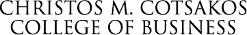 It was named in May 2001 as the "Christos M. Cotsakos College of Business" in honor of Dr. Christos M. Cotsakos, former E*TRADE CEO and alumnus.