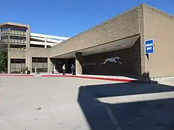 In 2021, Greyhound was sold to FlixMobility, the owner of Flixbus.[16] However, this did not include any bus stations and later that year, the downtown Greyhound station was sold to Chavez Properties for $4.25 million with the intention of redeveloping the site. As a result, Barons Bus Lines announced in late October 2022 that it would moved its operations to Arlington Heights the next month.[17] On November 1, both Barons and Greyhound commenced services at the new Galbraith Road station, allowing the downtown station site to be redeveloped.[18] The trailer ticket office is intended to be temporary, until a permanent structure can be built. However, the current facility lacks the amenities of the former station, and is located in an area which is difficult to access without a car.[1] This was somewhat alleviated on August 13, 2023, when the Route 43 Metro bus was extended to serve the station.[19]