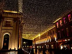 The Merchant City is the centre of Glasgow's growing 'cultural quarter', based on King Street, the Saltmarket and Trongate, and at the heart of the annual Merchant City Festival. The area has supported a huge growth in art galleries, the origins of which can be found in the late 80s when it attracted artist-led organisations that could afford the cheap rents required to operate in vacant manufacturing or retail spaces.[8] The artistic and cultural potential of the Merchant City as a 'cultural quarter' was harnessed by independent arts organisations and Glasgow City Council,[8] and the recent development of Trongate 103, which houses galleries, workshops, artist studios and production spaces, is considered a major outcome of the continued partnership between both.[9] The area also contains a number of theatres and concert venues, including the Tron Theatre, the Old Fruitmarket, the Trades Hall, St Andrew's in the Square, Merchant Square, and the City Halls.[10]