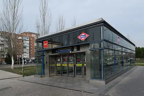 Ciudad de los Ángeles [θjuˈðað ðe los ˈaŋxeles] is a station on Line 3 of the Madrid Metro, serving the Los Ángeles barrio. It is located in fare Zone A.[1]