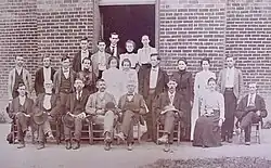 Sometime after 1870, Clay County developed a board of education. School board members were appointed by the North Carolina General Assembly for nearly 100 years until they were elected by the local population in a general election. In the early 1880s, Clay County operated nine white public schools and one “colored” public school serving 884 white students and 36 “colored” students.[9] The Hayesville Colored School was located at the old Mauldin Place near the present day landfill on Hinton Center Rd.[10][8]