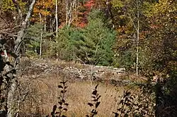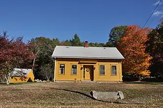 Clayville Historic District is an 81-acre (33 ha) historic district in Foster and Scituate, Rhode Island. The district encompasses the heart of the village of Clayville, a small 19th-century mill village. It is centered on the junction of Plainfield Pike, Field Hill Road, and Victory Highway near the Clayville Mill pond, and is roughly bisected by the town line between Foster and Scituate. The mill pond is impounded by a c. 1847 dam, which powered mills whose ruins and waterways lie downstream. The village is mainly residential, with vernacular 19th-century construction predominating. Notable buildings include the Clayville Christian Union Church, built 1867–71 with Greek Revival styling, and the c. 1845 Clayville Schoolhouse.[2]