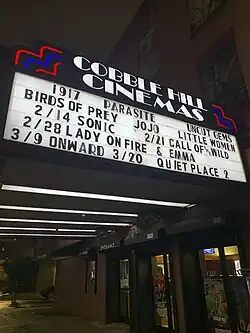 The Cobble Hill Cinemas marquee at night in Feburary 2020.
