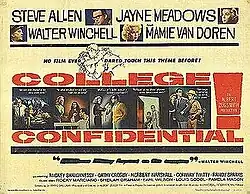 College Confidential is a 1960 American B-movie drama directed by Albert Zugsmith[1] and starring Steve Allen, Jayne Meadows and Mamie Van Doren.[2][3]