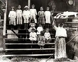 When colonists settled in pre-populated areas, the societies and cultures of the people in those areas permanently changed. Colonial practices directly and indirectly forced the colonized peoples to abandon their traditional cultures and established complex systems of power, so-called colonialities.[11] For example, European colonizers in the United States implemented the residential schools program to force native children to assimilate into the hegemonic culture.