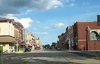 The district is the old commercial heart of town around the junction of Dickason Blvd and James St, including many cream brick buildings built by Richard Vanaken and Henry Boelte.[2] Notable buildings include the 1852 Corner Drug,[3] the 1858 Italianate Whitney Hotel,[4] the 1865 First National Bank (restyled Neoclassical in 1916),[5] the 1892 Richardsonian Romanesque Hotel Tremont,[6] and the 1903 Bonnett's Millinery Shop.[7][8]