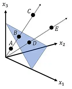 In general, John Aitchison defined compositional data to be proportions of some whole in 1982.[1] In particular, a compositional data point (or composition for short) can be represented by a real vector with positive components. The sample space of compositional data is a simplex: