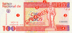 $100 150 x 70 mm Red, orange, and bright yellow Monument to Carlos Manuel de Céspedes The Cuban coat of arms 1994 January 1, 2021 Visible against the light José Martí's effigy