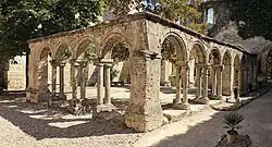 The cloister's existence has been punctuated with periods of slaughter and of peace, making it a place charged with history. This resulted in appearances in the art and culture of various different periods, giving the Cordeliers cloister a firm place in the imagination. For example, in 1839 the cloister’s decoration was reproduced at the Opéra de Paris for a production of 'Robert le Diable' by Giacomo Meyerbeer.[2] Pierre Gaspard-Huit also came to the cloister to film scenes for his film La mariée était trop belle with Brigitte Bardot and Micheline Presle.