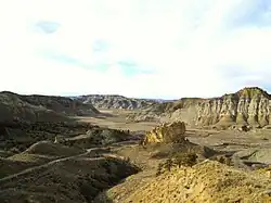 The Cretaceous shale which make up the surface of the breaks contain Ammonite fossils. Ammonites are an extinct form of the subclass Cephalopod. Fossil Ammonites have a disc like shape. In this area they commonly range from tiny up to about 10 to 14 inches (250–360 mm) across. A Moby Dick of Ammonite fossils – one about 5 to 6 feet (1.5–1.8 m) across or larger – was identified by Shell Oil Company geologists engaged on a field survey in the Cow Creek area in the late 1950s. They did not mark the site on their maps, and never had an opportunity to return.[11] The siting was at a remote spot on Cow creek or one of its tributaries, but in the breaks. Since it would take a crane to lift this monster, a heavy truck to haul it, and reasonably good roads to move it, this lost giant Ammonite fossil probably still awaits re-discovery on Cow Creek.