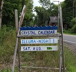 The Crystal Calendar lists public activities on the lake. It can be found at the intersection of Crystal Lake Road and Route 140.