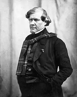 In 1858, in his romanticized accounts entitled Curiosités de l'histoire de France, polygraph Paul Lacroix (also known by the pen name "Bibliophile Jacob") fictitiously endowed Gilles de Rais with blond hair that clashed with a black beard with "almost bluish highlights, which had given the Sire de Rays the epithet Bluebeard, a popular nickname in Brittany, where his story was transformed into a fantastic tale."[43] Among other popular details invented by "Bibliophile Jacob", Gilles de Rais' singular facial hair and sobriquet ostensibly assimilated him to the cruel husband of the folk tale,[40] but Lacroix failed to specify which version of the tale he was referring to.[44] Thus, he opened the path to Gilles de Rais' conventional physiognomy in the literature of the time, taken up again and again by other novelists such as Émilie Carpentier (Mémoires de Barbe-Bleue, 1865) and Alexandre de Lamothe (Les Mystères de Machecoul, 1871).[45]