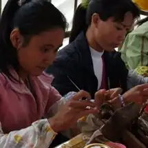 The grafting process begins by choosing a suitable donor mussel and cutting a strip of tissue from the mantle. This strip of tissue is then cut into three-millimeter squares. These squares are delivered to a technician who performs the operation. Unlike saltwater bead nucleation, this process is not considered difficult, and technicians need only minimum training to perform the operation. The technician creates small incisions on the upper valve, and inserts the tissue piece. A small twist of the tissue upon insertion is believed to create a higher ratio of round pearls. After the maximum number of grafts have been performed, the mussel is flipped, and the procedure is performed once again on the other valve of the shell.