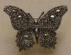 Over the long term cut steel jewellery has proven brittle resulting in relatively small amounts surviving to the present day.[1] Collections of cut steel jewellery are held by a number of museums including Lady Lever Art Gallery[11] Birmingham Museums Trust[12] and Musée des Beaux-Arts de Rouen.[13] Matthew Bolton's pattern book has also survived in the collection of Birmingham Archives and Heritage.[4]