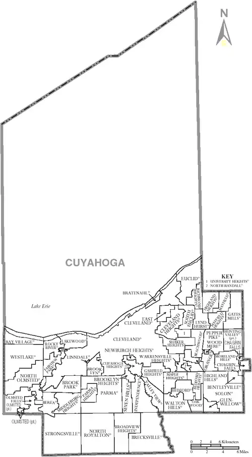 Map of Cuyahoga County, Ohio with Municipal and Township Labels
