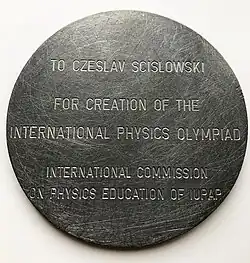In 1992, Ścisłowski was awarded a medal by the International Commission on Physics Education for "outstanding contribution to physics education." In awarding the medal, the commission recognized that it was "primarily as a result of his efforts that the first International Physics Olympiad was held in Poland in 1967 under the aegis of the Polish Physical Society."