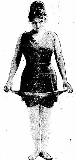 She rose to fame quickly in the early 1900s, and appeared in Broadway shows with Blanche Ring, Lew Fields, and Julian Eltinge.[2] She became a headline performer in vaudeville, with an act in which she first sang in an evening gown, or period costume, and then disrobed to perform acrobatic feats on a trapeze while clad in a leotard and tights.[3] She also performed living recreations of statues by Rodin.[4] In her youth she was noted for her attractive figure,[5] and also became known for her physical strength after an altercation with some "mashers" while she was walking on Broadway.[1] A follower of Christian Science, she promoted the values of exercise and moral reform.[6]