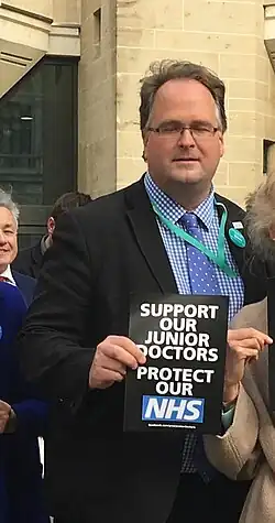 He was the chair of Doctors in Unite, also known as the Medical Practitioners' Union from 2015–2018.[8]