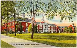 Thomas A. DeVilbiss High School was a public high school in Toledo, Ohio from 1931 to June 1991. It was part of the Toledo Public Schools, serving students from the DeVeaux, Elmhurst, Grove Patterson, Longfellow, Mayfair, McKinley, Nathan Hale, Old Orchard, and Whittier elementary schools. The building still sits at 3301 Upton Avenue near the Central Avenue intersection.