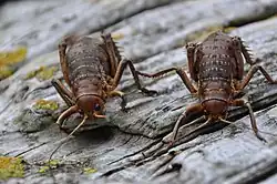 {{cite book}}: CS1 maint: multiple names: authors list (link) - ^ a b c d e Field, L. H. (2001). The biology of wetas, king crickets and their allies. CABI Pub. ISBN 978-0-85199-408-6. OCLC 559432458.