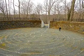 The nine acre sculpture garden behind the museum includes nine large sculptures and an old reservoir converted into a labyrinth.