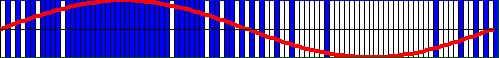 1-bit synchronous delta-sigma modulation (blue) of a sine wave (red)