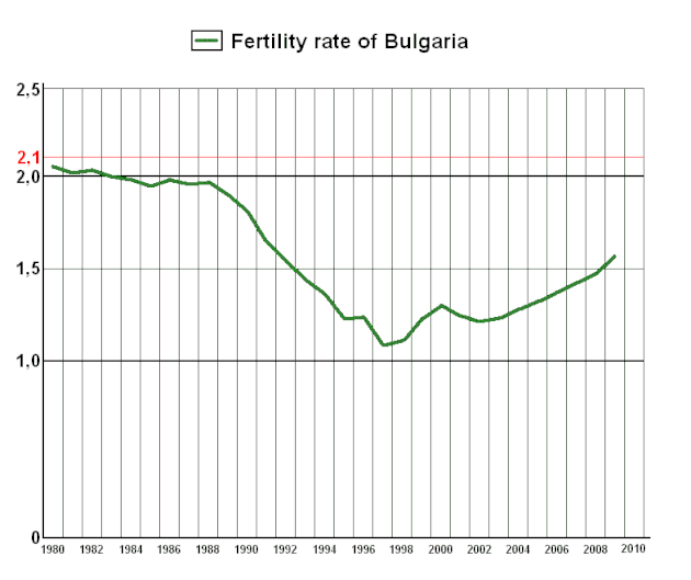 29. ^ a b "Total fertility rate by statistical regions, districts and place of residence - National statistical institute". www.nsi.bg.