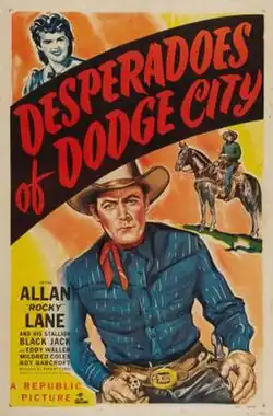 Desperadoes of Dodge City is a 1948 American western film directed by Philip Ford and written by Robert Creighton Williams. The film stars Allan Lane, Eddy Waller, Mildred Coles, Roy Barcroft, Tristram Coffin and William Phipps.[1][2][3] The film was released on September 15, 1948, by Republic Pictures.