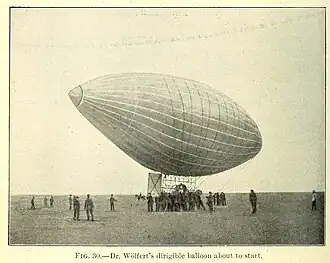 Deutschland was an experimental, hydrogen-filled,[1] non-rigid[1] airship built in Germany in the late 19th Century by Dr Friedrich Wölfert.[2] During a test flight in Berlin in 1897, Deutschland caught fire and crashed.[3] Wölfert and his mechanic, Robert Knabe, were killed,[3] thus becoming the first two airship fatalities. It was the second of Wölfert's airships to be named Deutschland.